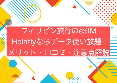 こんにちは。 旅好きアラサー女子の世界一周ブログを運営しているziziです。 フィリピン旅行のネット通信はHolafly(オラフライ)のeSIMがおすすめ! データ量無制限! 24時間日本語サポートあり! フィリピン旅行中、データ量気にせずネットできるのは快適…