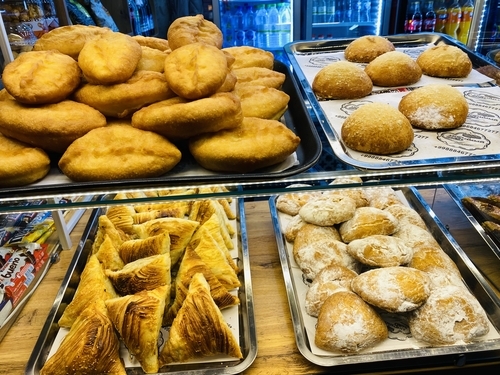 ブハラやヒヴァではせいぜいスナックと飲み物のみでしたが、サンドイッチやピザまで売ってましたよ〜。
