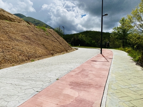 ブルーアイ入り口の駐車場まで連れてきてもらい、ここから1.7km徒歩でブルーアイまで向かいます。