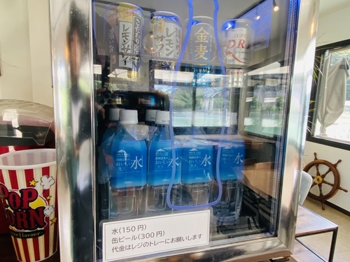 お酒(300円)、水(150円)、カップ麺、お菓子、おつまみなど販売してました。