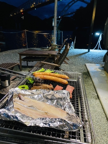 食材は近くのスーパーで買ってきたお肉や野菜、藍のあまくさ村で購入した天草大王のウインナーもジュージュー。昨日釣ったタチウオも塩焼きに。